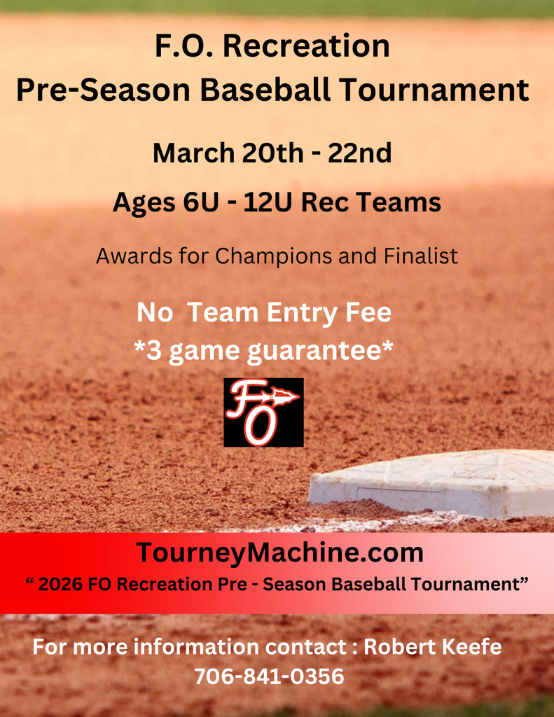 FO Recreation and the City of Fort Oglethorpe is please to announce the Ballfields at Barnhardt Complex is now avialble to be rented for weekend tournaments on open dates. For more information visit our tournament page